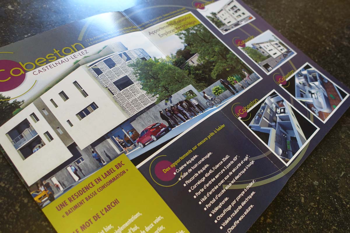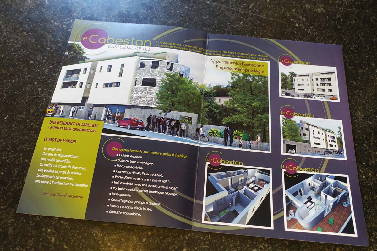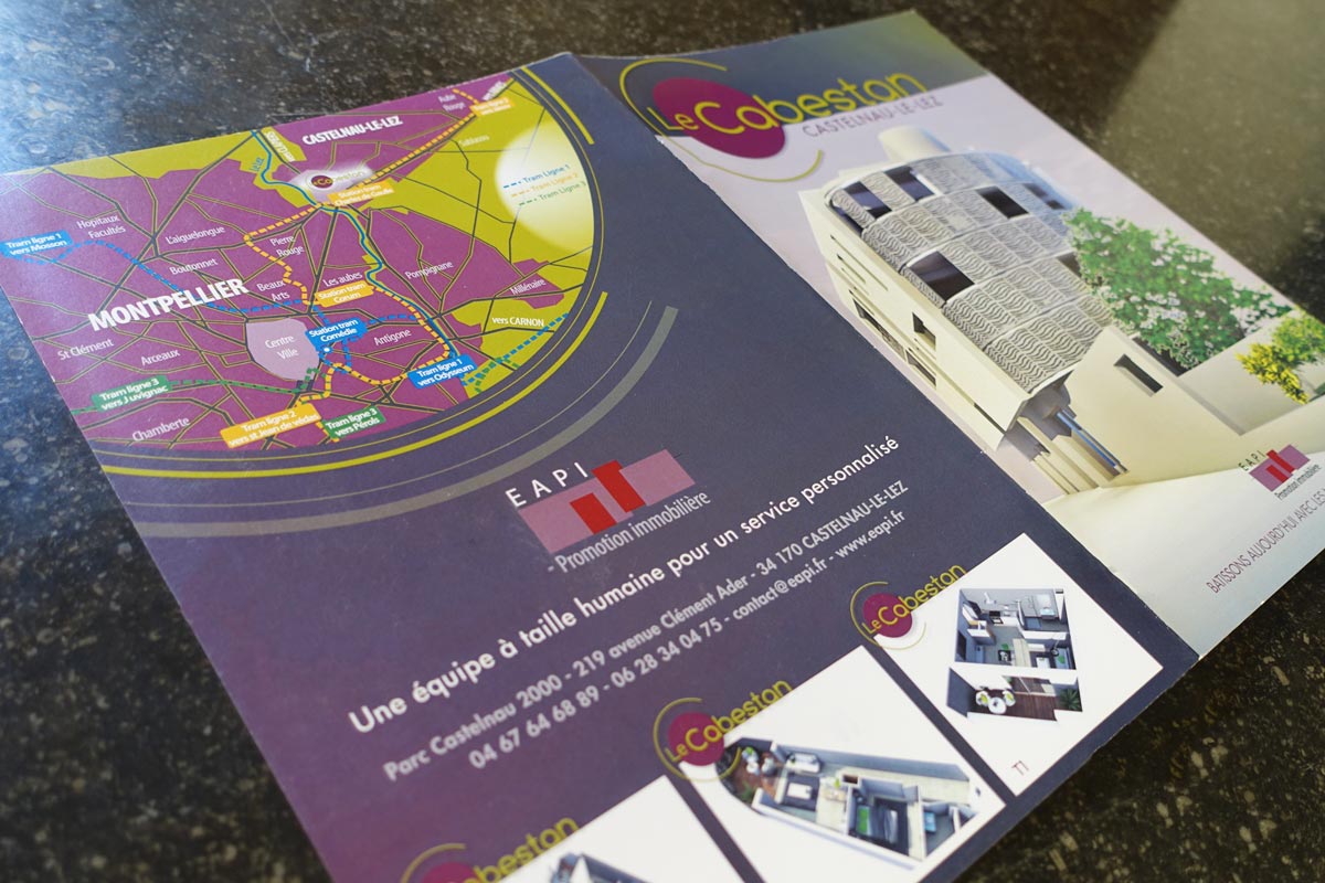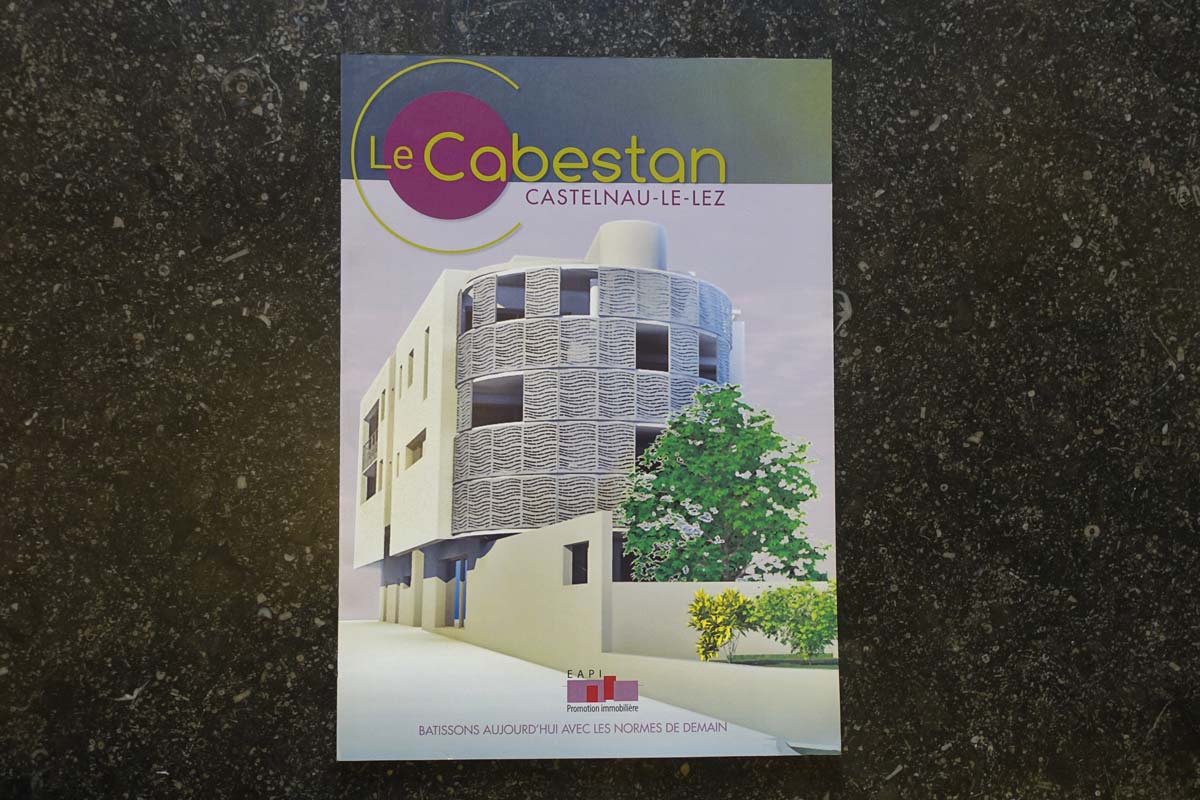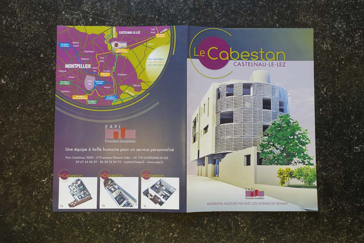 EAPI, promoteur immobilier, m’a chargé de réaliser une plaquette de présentation du projet du « Cabestan », immeuble résidentiel situé à Castelnau-le-Lez. Recherches graphiques et création de la plaquette.